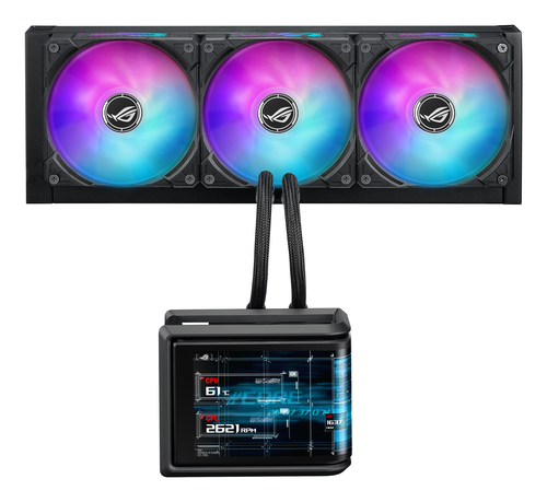 ASUS ROG Ryuo IV SLC 360 ARGB offre un raffreddamento liquido avanzato per processori con schermo AMOLED curvo e illuminazione ARGB. Garantisce prestazioni termiche eccellenti grazie alle tre ventole da 12 cm.