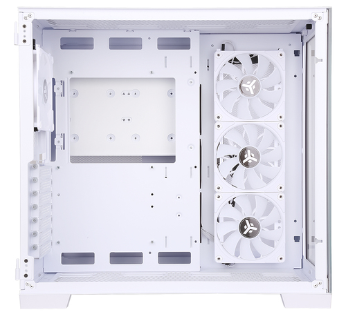 Itek DARK CAVE è stato progettato per soddisfare le richieste degli utenti che hanno bisogno di estetica, performance, versatilità, spazio e facilità di assemblaggio in un’unica soluzione. La paratia frontale e laterale sono in vetro temperato per mostrare le componenti all’interno. Quella laterale ha una comoda apertura calamitata “a click” per un immediato accesso all’hardware. Internamente lo spazio è tantissimo, è infatti possibile installare schede video di ultima generazione di lunghezza fino a 420mm, dissipatori alti 160mm, liquid cooling fino a 360mm, diverse ventole aggiuntive e il cable management è addirittura di 95mm. In dotazione sono presenti ben 4 ventole ARGB di ultimissima generazione della serie UW, collegate tra loro senza fili migliorando quindi la gestione dei cavi e l’estetica interna oltre ad offre un air flow ottimale. Tutte gestite dal comodo HUB e relativo telecomando e, in alternativa, dal tasto reset o direttamente dalla motherboard. Nella parte superiore troviamo oltre ai collegamenti audio, 2 porte USB 3,0 e una Type-C.