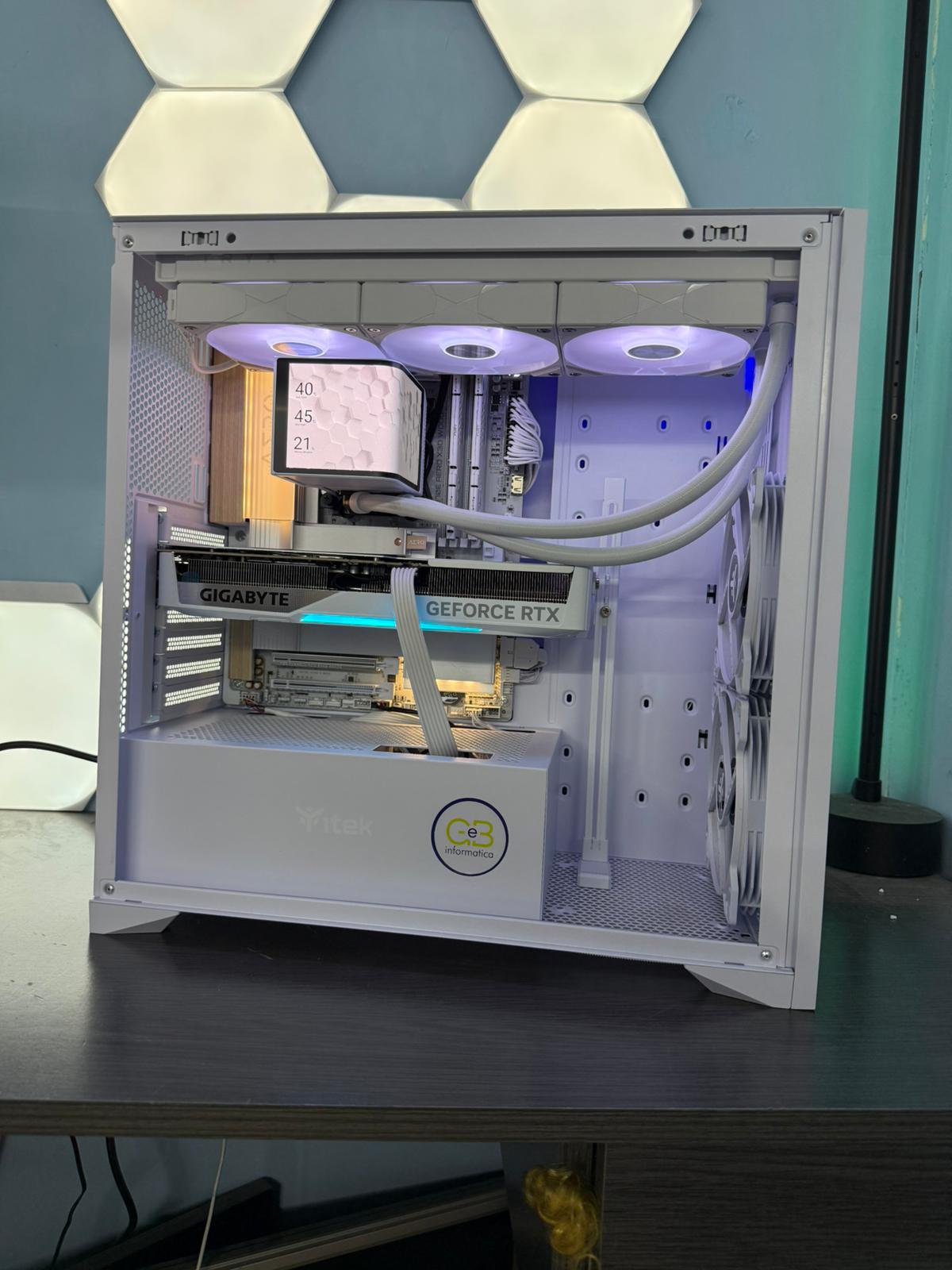 GEB ELEGANCE è un PC raffinato e distintivo, pensato per chi cerca prestazioni di fascia alta abbinate a un design unico. La scheda madre con dettagli in legno dona un tocco naturale ed esclusivo a una configurazione total white, creando un’estetica elegante e moderna. Il Ryzen 7 9700X garantisce prestazioni eccezionali, mentre la RTX 5070 assicura potenza grafica di livello top per gaming in 1440p con massima fluidità. GEB ELEGANCE è l’incontro perfetto tra potenza, stile e raffinatezza.